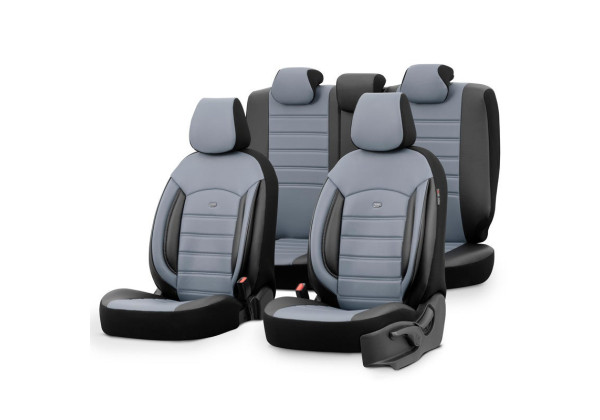 Juego de Fundas de Asiento Universal otoM Cuero Completo 'Inspire' Negro/Gris - 11 piezas - compatible con Airbags Laterales