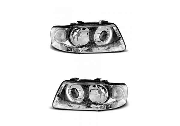 Juego de faros delanteros Audi A3 09 00-05 03 Aprobación E-marcado (producto Homologado) Luz De Estacionamiento: W5w Luces De Giro: Py21w Luz Baja: H1 Luz Alta: H7 Preparado Para Regulacion Electrica montaje conectar y listo sin modificaciones