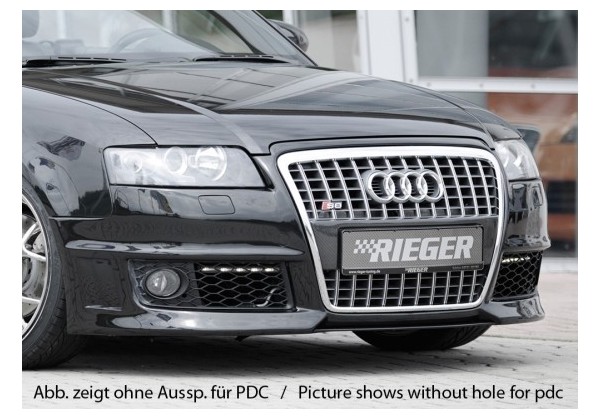 Paragolpes delantero Rieger Audi A4 (8H) Cabrio bis restyling, 04.2002â12.2005 Compatible con Audi A4 (8H) Cabrio bis restyling, 04.2002â12.2005. Consultar disponibilidad o dudas llamando al 946403645 / 636094879 (tambien por whatsapp) o haciendo click en ¿Preguntas?. Tiempo De Entrega 3/4 semanas.