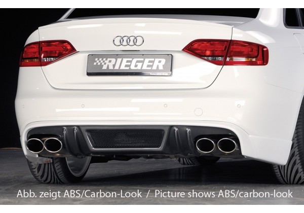 Spoiler trasero Rieger Audi A4 (B8/B81) 11.07-12.11 (antes de restyling)/sedan, avant A4 S4 (B8/B81) 11.08-12.11 (antes de restyling)/sedan, avant Caracteristicas para tubo de doble cola izquierdo + derecho, (4x115x85mm oval), plástico ABS, para autos con S-Line Exterieur, incl. Malla de aluminio, equipo de montaje, §-Certificado. Material plastico ABS Compatible con Audi A4 (B8/B81) 11.07-12.11 (antes de restyling)/sedan, avant A4 S4 (B8/B81) 11.08-12.11 (antes de restyling)/sedan, avant. Consultar disponibilidad o dudas llamando al 946403645 / 636094879 (tambien por whatsapp) o haciendo click en ¿Preguntas?. Tiempo De Entrega 3/4 semanas.
