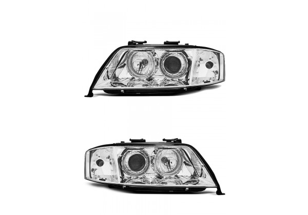 Juego De Faros Delanteros Audi A6 05 97-09 99 Ojos De Angel Cromados Xenon Aprobación E-marcado (producto Homologado) Luz De Posicionamiento: Ojos De Angel Luces De Giro: P21w Luz Baja: D2s Luz Alta: H7 Preparado Para Regulacion Electrica Montaje Conectar Y Listo Sin Modificaciones