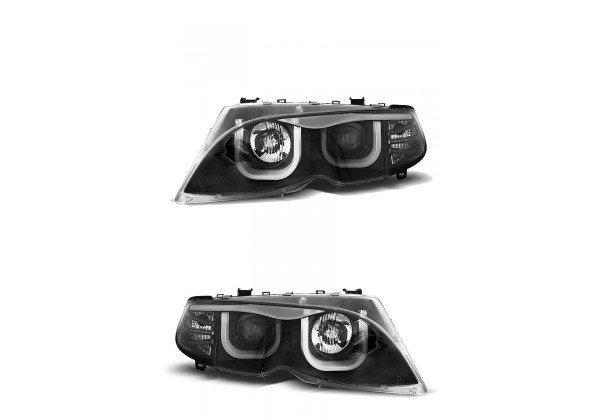 Juego de faros delanteros Bmw E46 09 01-03 05 S/t Negro Projector Solo Compatible Con Limousine, Touring Producto Homologado Luz De Estacionamiento: 3 Puertas S Luces De Giro: P21w Luz Baja: H7 Not Luz Alta: H1 Regulation: Electrica Ojos De Angel 3 Puertas montaje conectar y listo sin modificaciones
