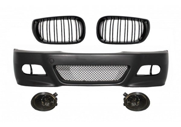 Paragolpes Bmw E46 (98-04) M3 Look And Central Kidney Grilles Double Stripe M Design Piano Black