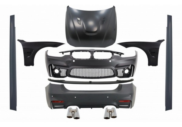 Kit carroceria BMW F30 (2011-2019) EVO II M3 CS Design con Front Fenders Black and Hood Bonnet & Muffler Tips Chrome