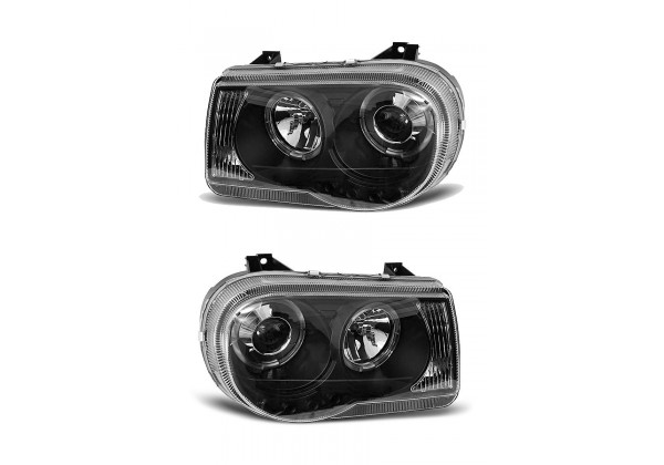Juego de faros delanteros Chrysler 300c 05-10 Ojos De Angel Negro Producto No Homologado Luz De Posicionamiento: Ojos De Angel Luz Baja: Hb4 Luz Alta: H1 Regulacion Manual montaje conectar y listo sin modificaciones