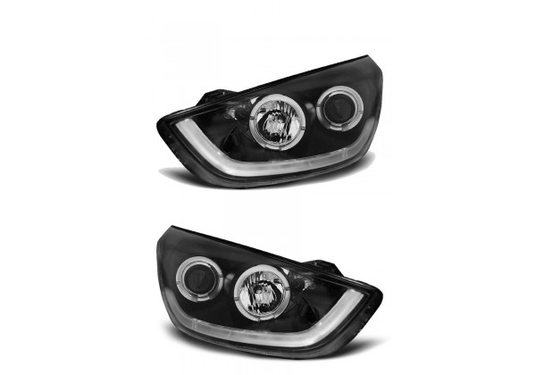 Juego de faros delanteros Hyundai Tucson Ix35 10-13 Negro Tube Light Faros Con Luz De Posicionamiento En Funcion Leds And Dual S Producto Homologado Luz De Estacionamiento: Led + S Luces De Giro: P21w Luz Baja: H7 Luz Alta: H1 Preparado Para Regulacion Electrica montaje conectar y listo sin modificaciones