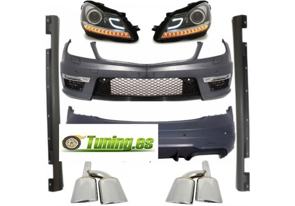 Este kit de carrocería, junto con las puntas de silenciador de escape y los faros delanteros diurnos , está destinado a cambiar la apariencia de su automóvil y transformarlo en un modelo C63 de diseño deportivo con diseño A. Compatibilidad Este kit de carrocería es compatible con compatible con: Mercedes C-class W204 (2007-2012) Mercedes C-class W204 restyling (2012-2015) No compatible con: Mercedes C-class S204 Estate Station Wagon SW Mercedes C-class W204 AMG Mercedes Clase C C204 Coupé Disponible con sensores PDC (control de distancia de estacionamiento) delanteros y traseros. Para automóviles sin PDC ofrecemos sensores falsos - cubiertas