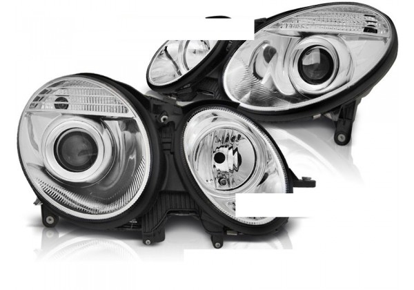 Juego De Faros Delanteros Mercedes W211 E-klasa 05 06-09 Cromado Aprobación E-marcado (producto Homologado) Luz De Estacionamiento: W5w Luces De Giro: Py21w Luz Baja: H7 Luz Alta: H7 Preparado Para Regulacion Electrica Montaje Conectar Y Listo Sin Modificaciones