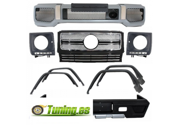 Adecuado para todos los Mercedes Benz W463 G-Class (1989-up) Adecuado también para Mercedes G-Class W461 (1992-2003). Para instalar este kit de carrocería en W461, se debe adaptar el refuerzo metálico del parachoques delantero.