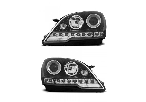Juego de faros delanteros Mercedes W164 Ml M-clase 08- Daylight Negro Faros Con Luz De Posicionamiento En Funcion Leds Producto Homologado Luz De Estacionamiento: Led Luz Baja Y Alta: :h7 Luces De Giro: Py21w Preparado Para Regulacion Electrica (motor Integrado) montaje conectar y listo sin modificaciones