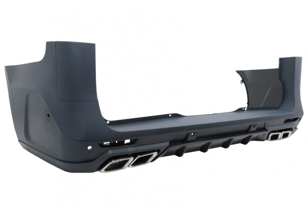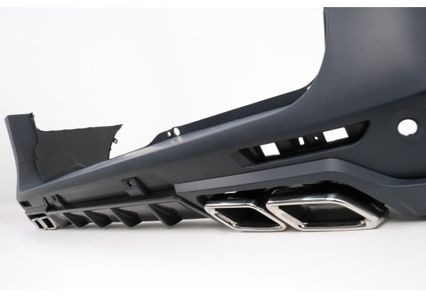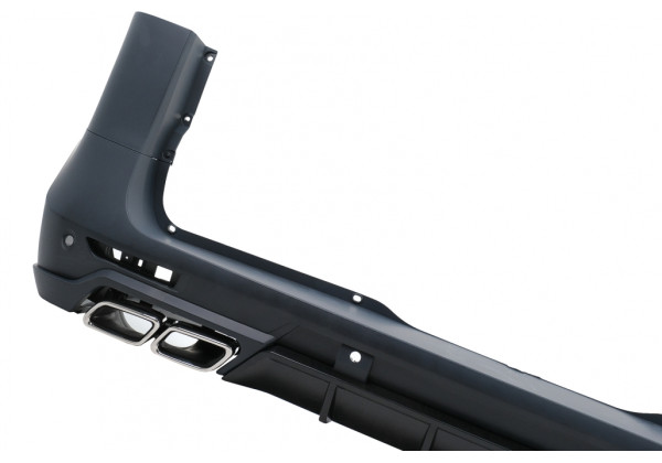 Parachoques trasero. Fabricado en PP de alta calidad (polipropileno). Equipado con soportes PDC y difusor de parachoques trasero con puntas de silenciador de escape ficticio cromado.