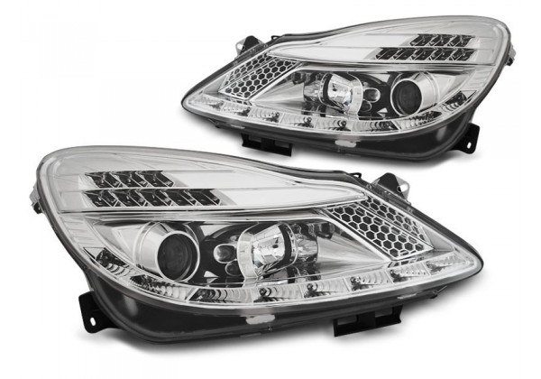 Juego de faros delanteros Opel Corsa D 04 06-11 Daylight Cromados Faros Con Luz De Posicionamiento En Funcion Leds Producto Homologado Luz De Estacionamiento: Led + Pw21w Luces De Giro: Led Luz Baja: H1 Luz Alta: H1 Preparado Para Regulacion Electrica montaje conectar y listo sin modificaciones