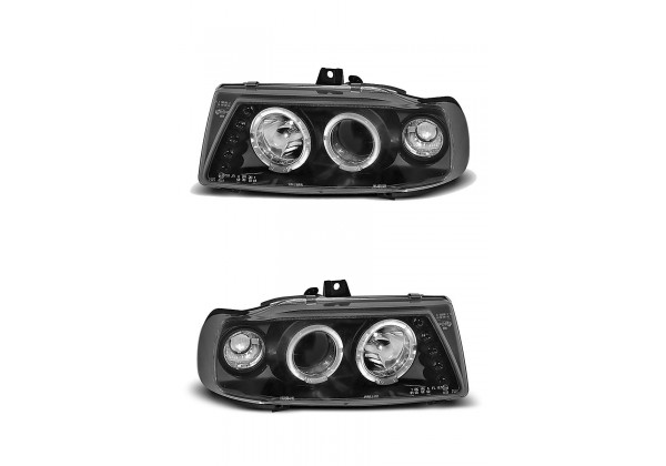 Juego de faros delanteros Seat Ibiza / Cordoba/ Polo Variant, Sedan 10 93-08 99 Ojos De Angel Negro Aprobación E-marcado (producto Homologado) Luz De Posicionamiento: Ojos De Angel Luces De Giro: P21w Luz Baja: H1 Luz Alta: H1 Regulacion Manual montaje conectar y listo sin modificaciones