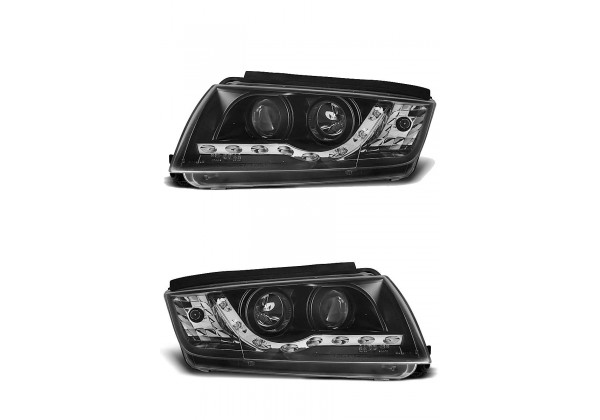 Juego de faros delanteros Skoda Fabia 12 99-08 Daylight Negro Faros Con Luz De Posicionamiento En Funcion Leds Producto Homologado Luz De Estacionamiento: Led Luces De Giro: P21w Luz Baja: H1 Luz Alta: H1 Preparado Para Regulacion Electrica montaje conectar y listo sin modificaciones