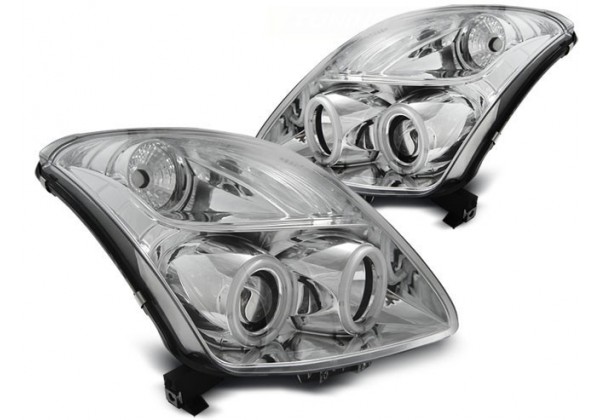 Juego de faros delanteros Suzuki Swift 05 05-10 Ccfl Ojos De Angel Cromados Faros Ccfl Ojos De Angel Producto Homologado Luz De Posicionamiento: Ojos De Angel Ccfl+w5w Luces De Giro: Py21w Luz Baja: H1 Luz Alta: H1 Preparado Para Regulacion Electrica montaje conectar y listo sin modificaciones