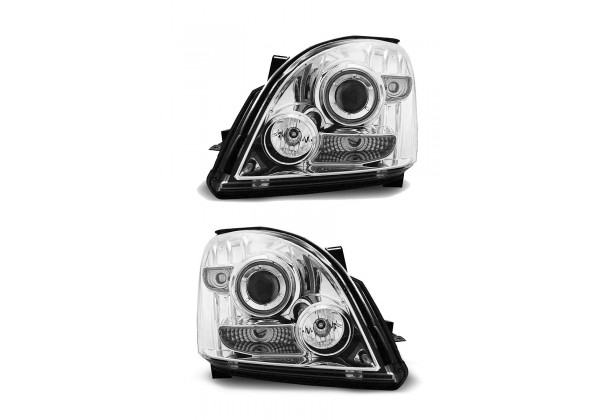 Juego de faros delanteros Toyota Land Cruiser 120 03-09 Ojos De Angel Cromados Ccfl Producto No Homologado Luz De Estacionamiento: Ccfl S Luces De Giro: W21w Luz Baja: H1 Luz Alta: H1 Regulacion Manual montaje conectar y listo sin modificaciones