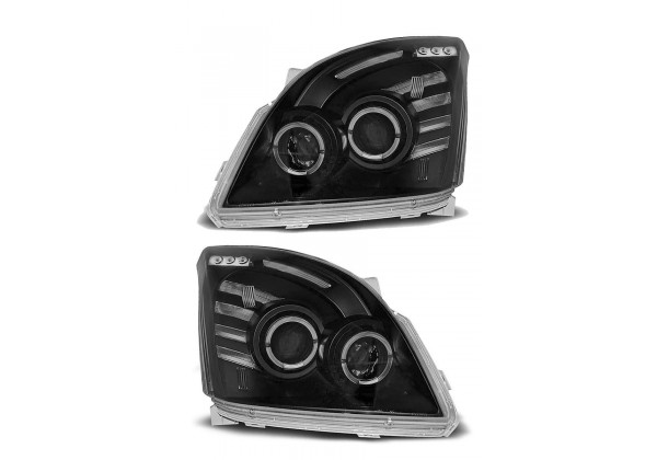 Juego de faros delanteros Toyota Land Cruiser 120 03-09 Ojos De Angel Negro Producto No Homologado Luz De Posicionamiento: Ojos De Angel Luces De Giro: W21w Luz Baja: H7 Luz Alta: H1 Preparado Para Regulacion Electrica montaje conectar y listo sin modificaciones