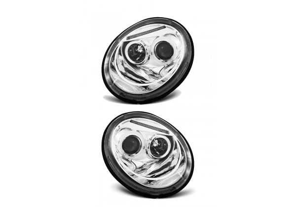 Juego de faros delanteros Vw New Beetle 10 98-05 05 Ojos De Angel Cromados Producto Homologado Luz De Estacionamiento: Single Luces De Giro: P21w Luz Baja: H1 Luz Alta: H1 Regulacion Manual montaje conectar y listo sin modificaciones