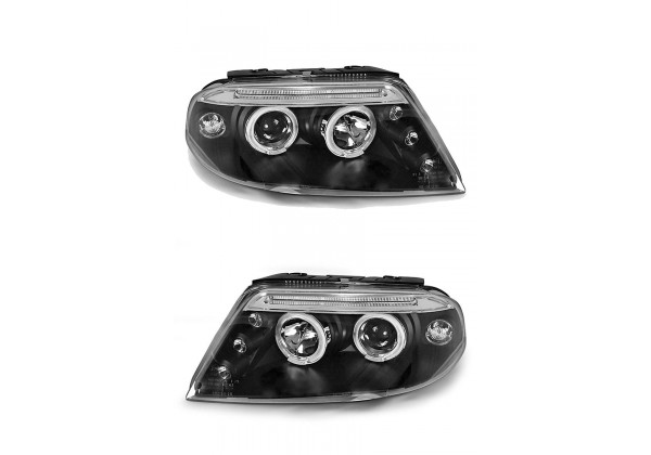 Juego de faros delanteros Vw Passat 3bg 09 00-03 05 Ojos De Angel Negro Aprobación E-marcado (producto Homologado) Luz De Posicionamiento: Ojos De Angel Luces De Giro: P21w Luz Baja: H1 Luz Alta: H1 Preparado Para Regulacion Electrica montaje conectar y listo sin modificaciones