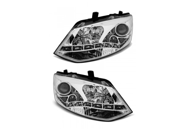 Juego de faros delanteros Vw Polo 6r 09-03 14 Drl Cromados Faros Con Autentica Luz Diurna Real Leds No Compatible Con La Version H4 De Origen Producto Homologado Ece R87 Luz De Estacionamiento: Led Drl: Led Luces De Giro: Py21w Luz Baja: H7 Luz Alta: H1 Preparado Para Regulacion Electrica montaje conectar y listo sin modificaciones